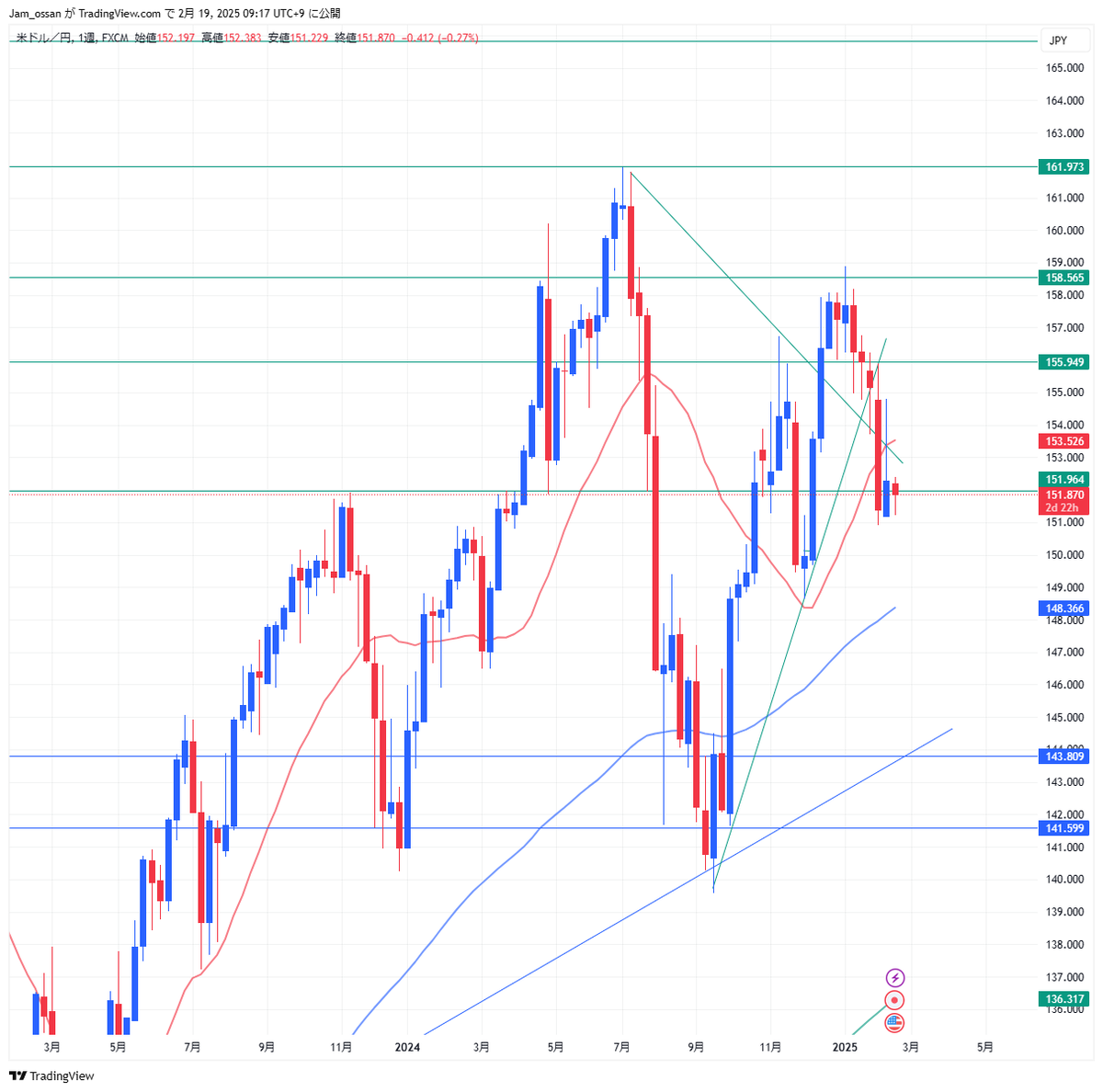 チャートに話を戻すと三尊を作るにしても、そのまま下落するにしても150円のラインまで下落するかが焦点です